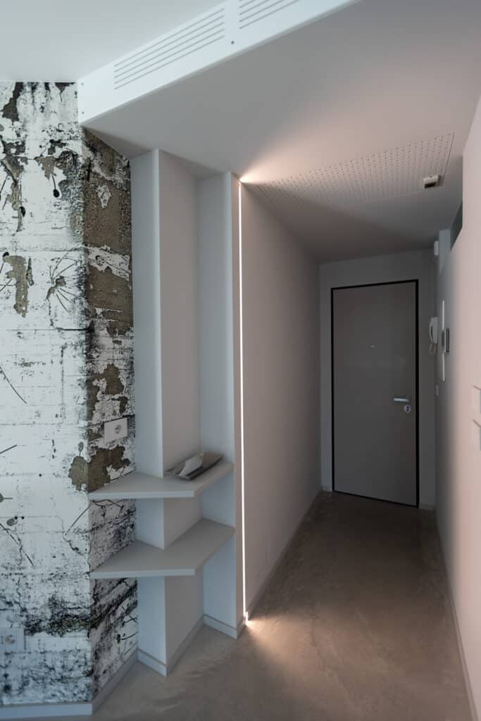 La scelta di colori neutri, superfici riflettenti e materiali ricercati contribuisce a creare ambienti luminosi, armoniosi e accoglienti, dove ogni dettaglio è pensato per favorire benessere e comfort abitativo.